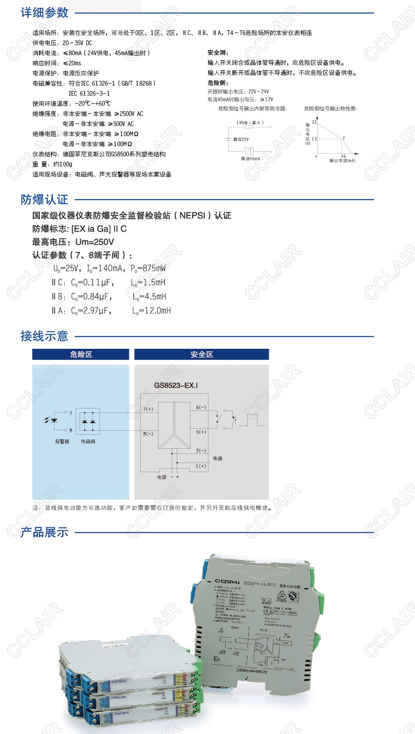 GS8523-EX.I 一進(jìn)一出 開(kāi)關(guān)量輸出隔離式安全柵