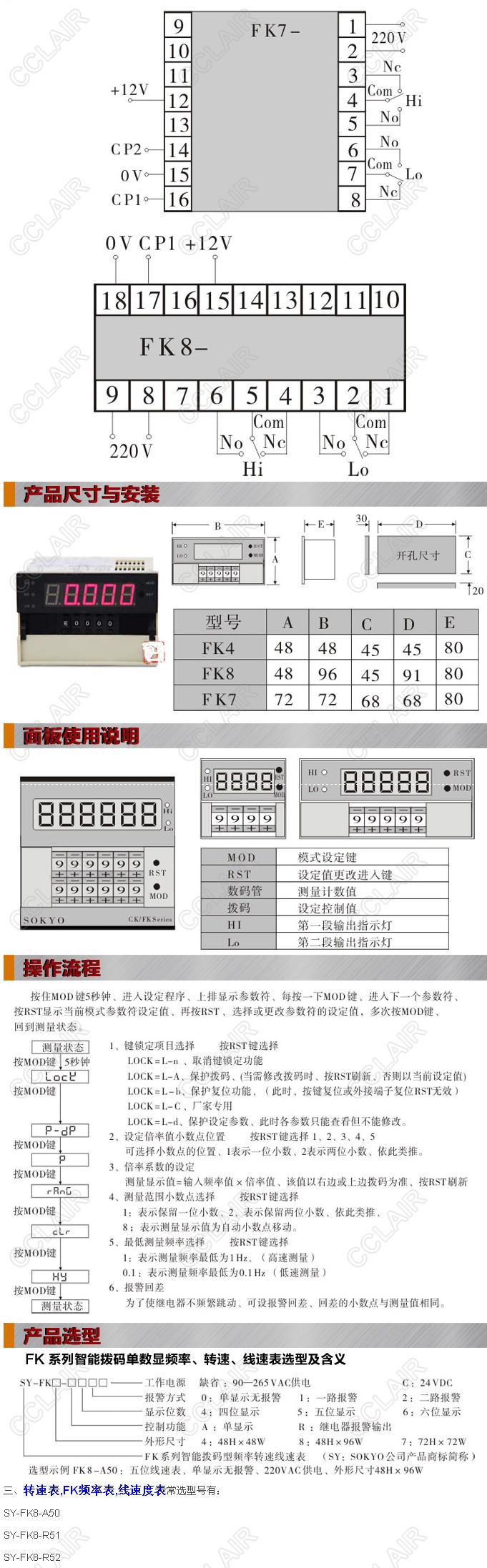 SY-FK8-A50,SY-FK8-R51,SY-FK8-R52,SY-FK4-A50,SY-FK4-R51,FK頻率表,線速度表,傳感器配套儀表