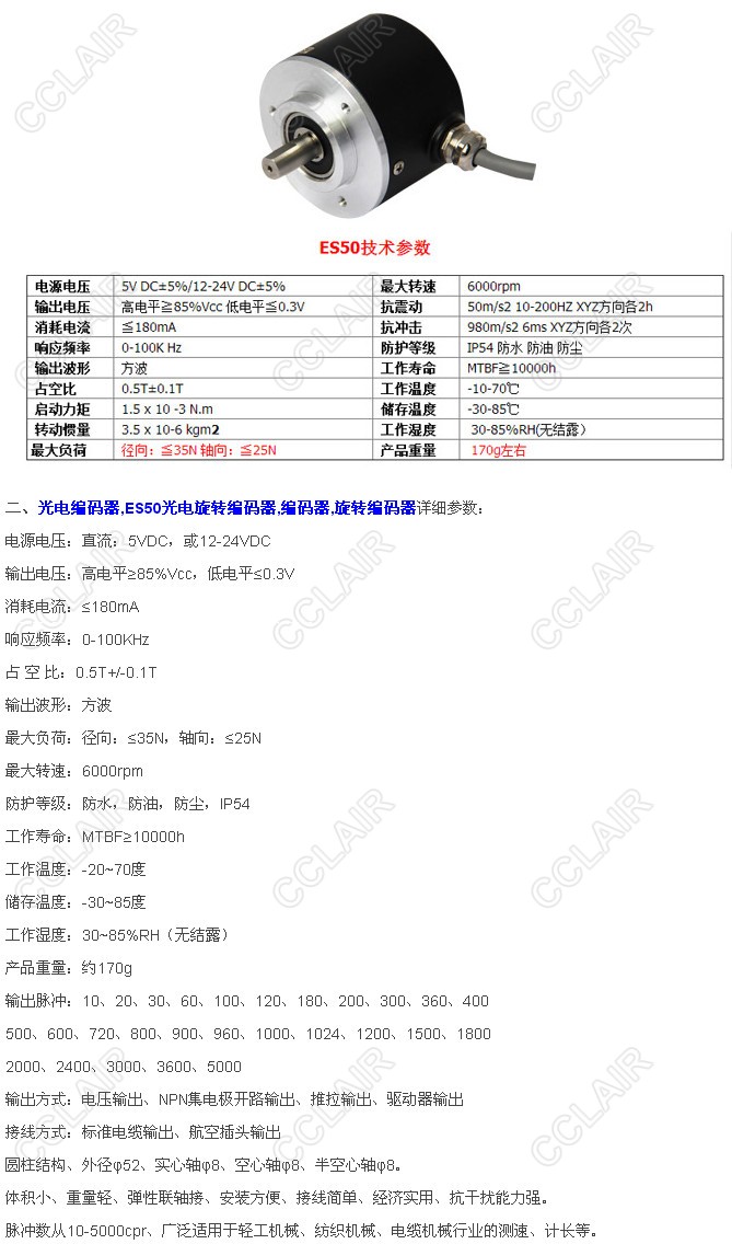 SY-ES50-RB30,SY-ES50-RB100,SY-ES50-RB360,SY-ES50-RB600,ES50光電旋轉(zhuǎn)編碼器