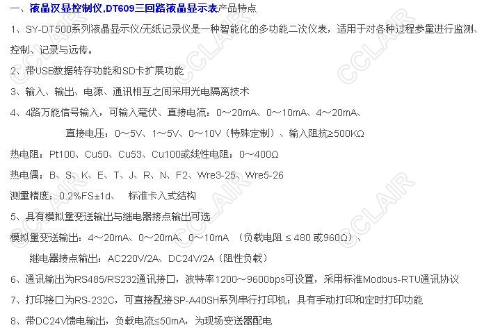 SY-DT609Y,SY-DT609R,SY-DT609YT,SY-DT609RT,SY-DT609YS,DT609三回路液晶顯示控制儀