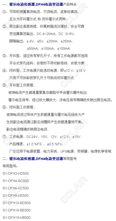 SY-DFH4-KD500,SY-DFH4-KD500B,SY-DFH4-KD500C,SY-DFH4-KD500D,DFH4霍爾電流變送器