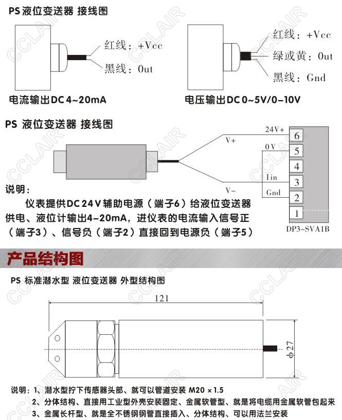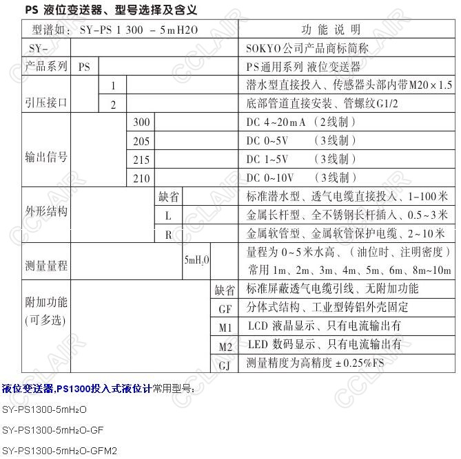 SY-PS1300-5mHO,SY-PS1300-5mHO-GF,PS1300-5mHO-GFM2,PS1300投入式液位計(jì)