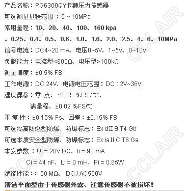 SY-PG6300QY-1MPa,SY-PG6300QY-1MPa-i, PG6300QY卡箍壓力傳感器