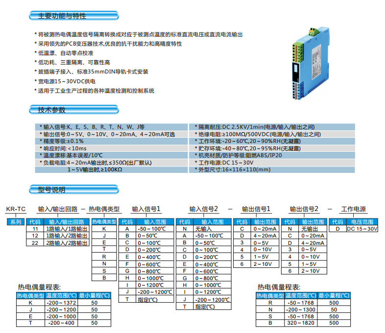 KR-TC,KR-TC11,KR-TC12,KR-TC22熱電偶隔離變送器