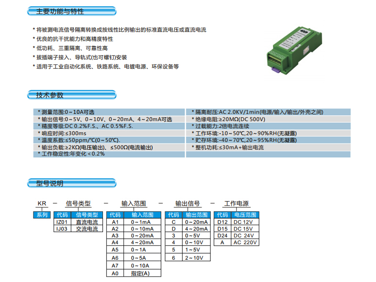 KR-IZ01,KR-IJ03 單相電流隔離變送器(端子輸入)