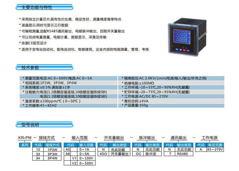 KR-PM,KR-PM-12,KR-PM-33,KR-PM-34, 單相/三相智能電力儀表