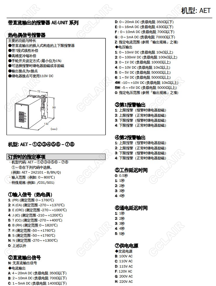 AET,AET-2A2101-B/BN/Q,AET-1,AET-2,AET-3,AET-4,AET-5,AET-6,AET-7,AET-8,熱電偶報警器AET-N,AET-0,