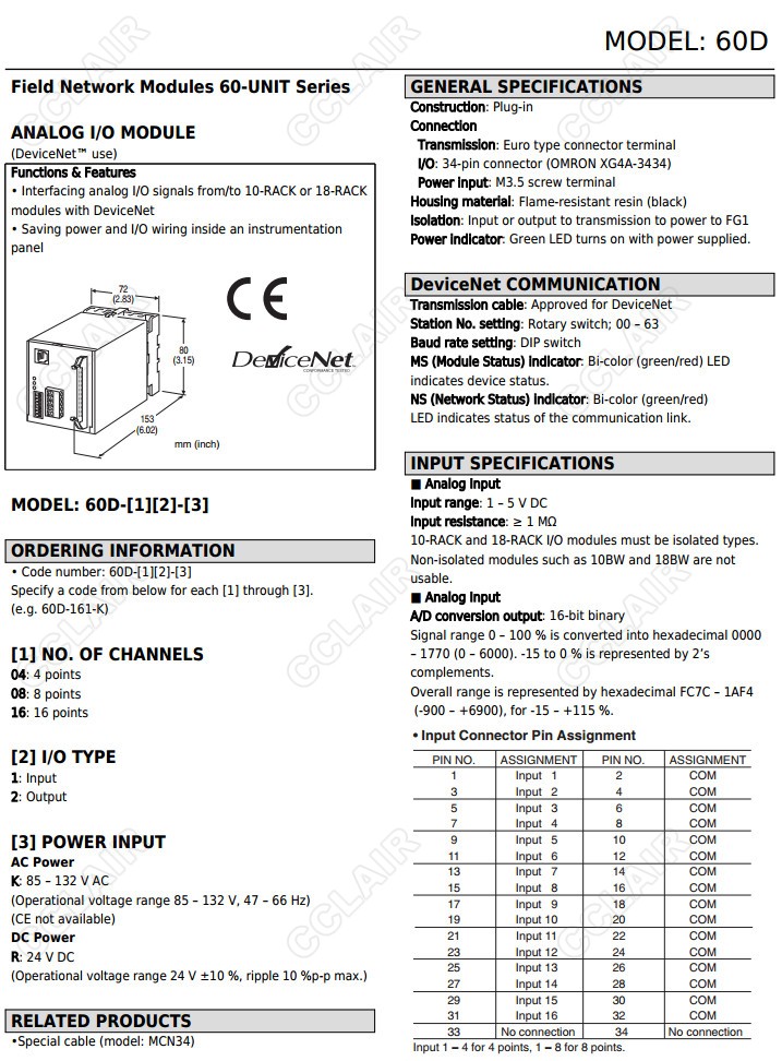 60D,60D-161-K,60D-041,60D-042,60D-081,60D-082,60D-161,60D-162,模擬量I/O模塊