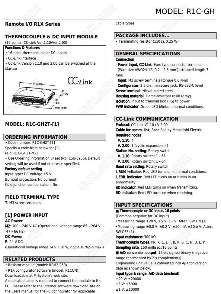 R1C-GH,R1C-GH2T-M2,R1C-GH2T-R,CC-Link用 直流/熱電偶 16點(diǎn)輸入模塊,R1D-GH,DeviceNet用 直流/熱電偶 16點(diǎn)輸入模塊
