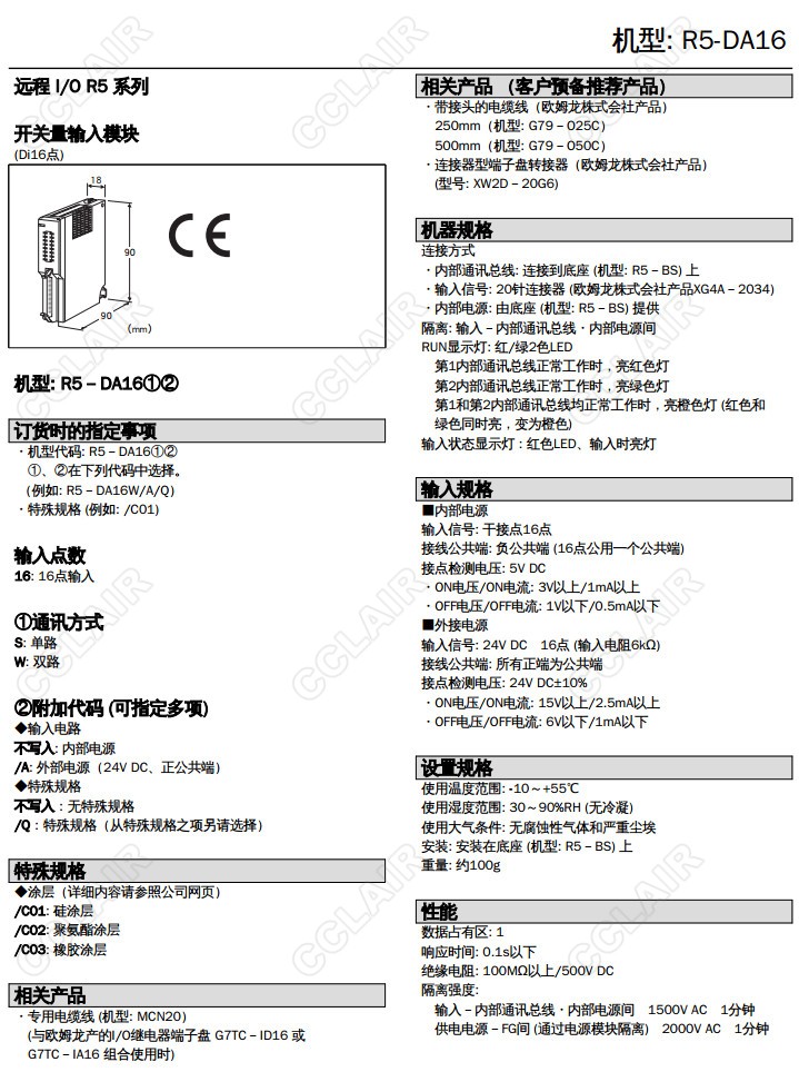 R5-DA16,R5-DA16W/A/Q,R5-DA16S/A/Q,Di 16點 接點輸入模塊