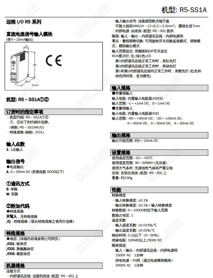 R5-SS1A,R5-SS1AW/Q,R5-SS1AS/Q直流電流信號輸入模塊