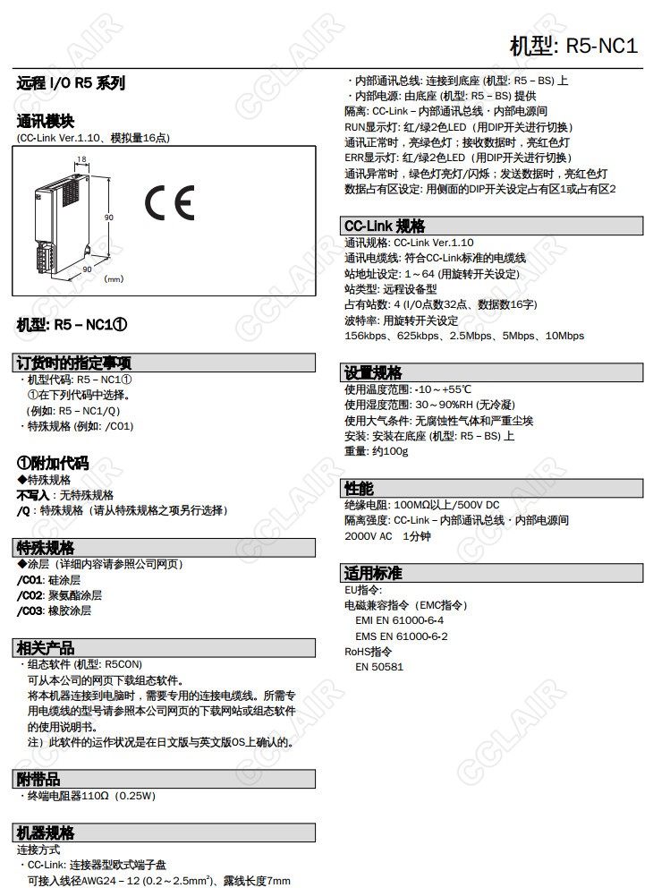 R5-NC1,R5-NC1/Q,R5-NC1/C01,R5-NC1/C02,R5-NC1/C03,CC-Link通訊模塊,R5-NT1,T-Link通訊模塊