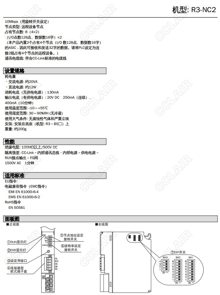 R3-NC2,R3-NC2-R/CE/Q,R3-NC2-N,R3-NC2-K3,CC-Link Ver.1; 模擬量信號(hào) 32點(diǎn)通訊模塊