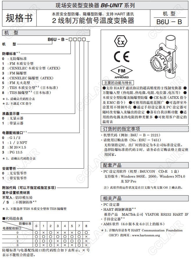 B6U-B,B6U-B-2121,B6U-B-0,B6U-B-1,B6U-B-2,2線制萬(wàn)能信號(hào)溫度變換器(本質(zhì)安全型防爆、隔爆型防爆、支持HART通訊)B6U-B-3,B6U-B-4,B6U-B-5,B6U-B-7,B6U-B-8,