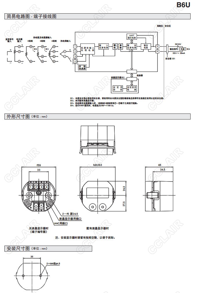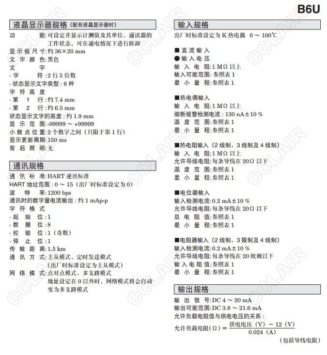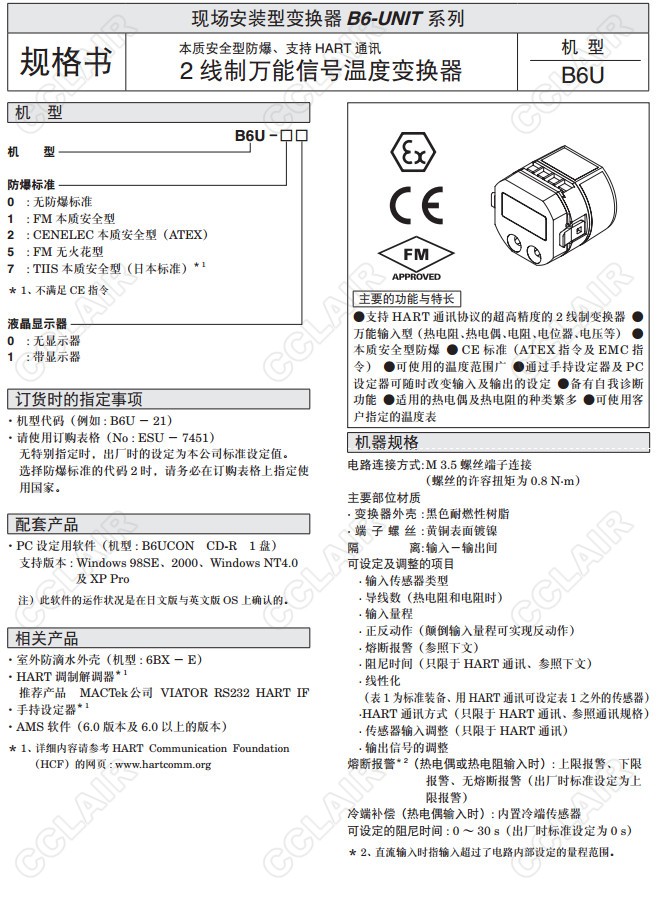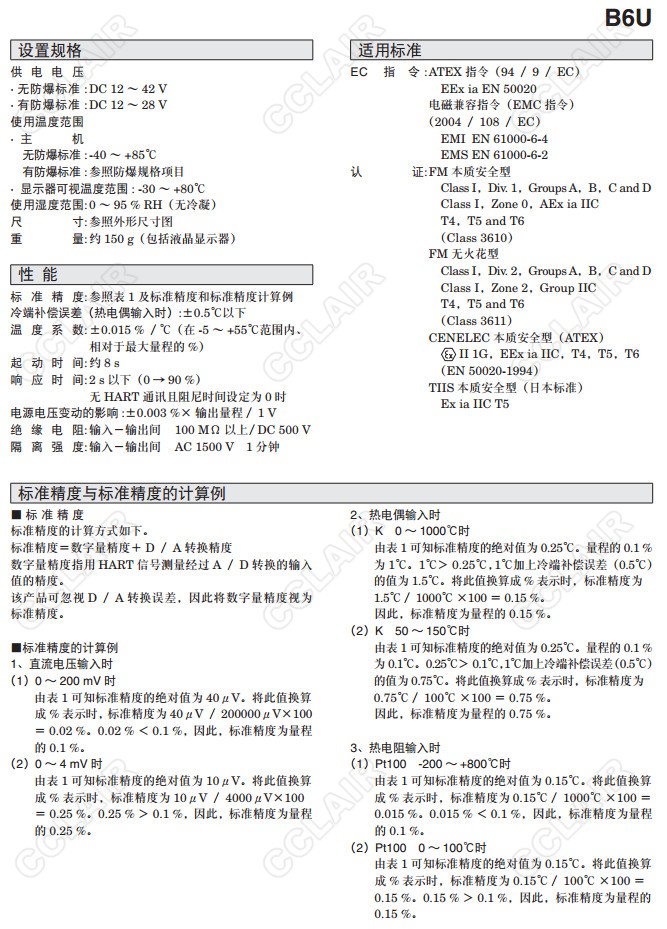 B6U,B6U-0,B6U-1,B6U-2,B6U-5,B6U-7,線制萬能信號(hào)溫度變換器(本質(zhì)安全型防爆、支持HART通訊)