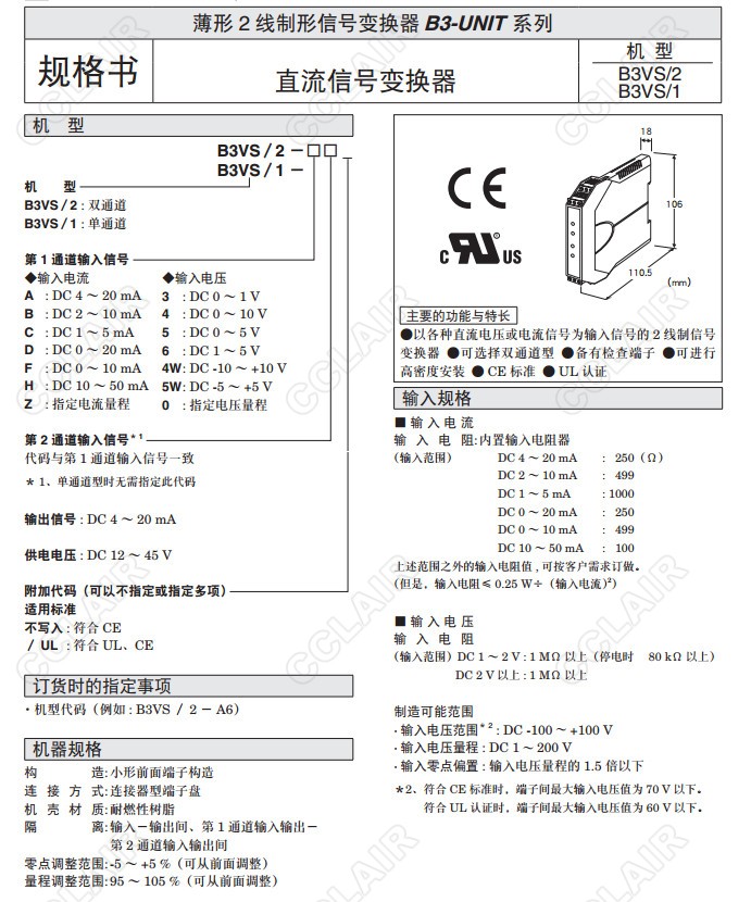 B3VS/1,B3VS/2,B3VS/1-A,B3VS/2-A,B3VS/1-B,B3VS/2-B,B3VS/1-C,直流信號變換器(單通道、雙通道)B3VS/2-C,B3VS/1-D,B3VS/2-D,B3VS/1-F,B3VS/2-F,B3VS/1-H,B3VS/2-H,B3VS/1-Z,B3VS/2-Z,