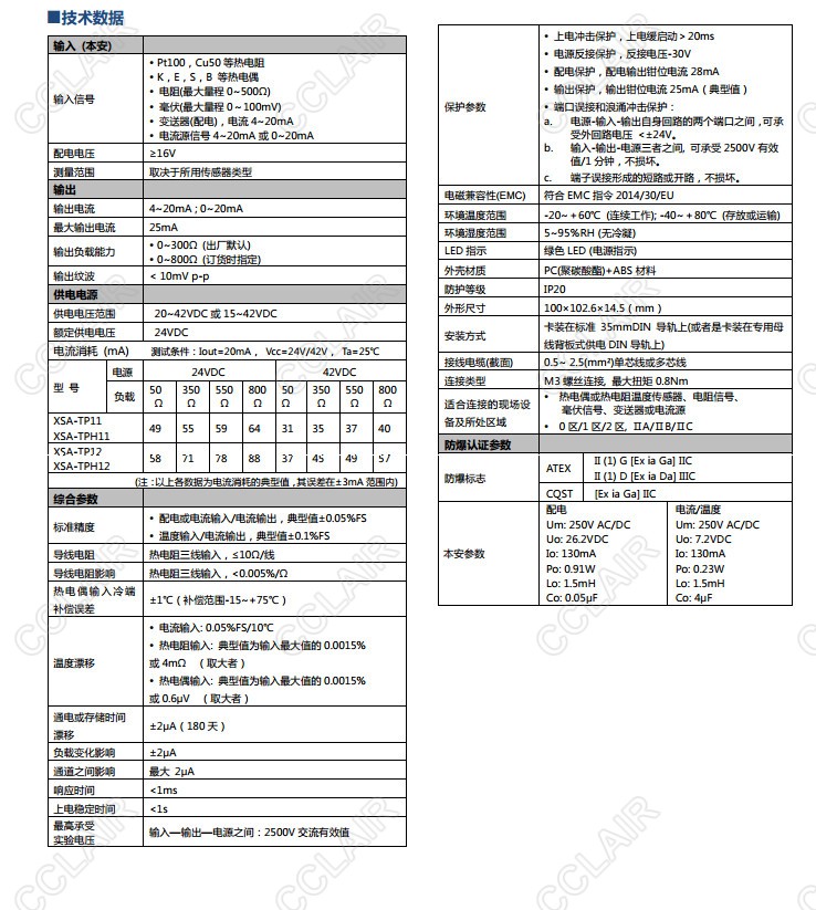 XSA-TP11,XSA-TPH11,XSA-TP12,XSA-TPH12,XSA-TP通用信號安全柵