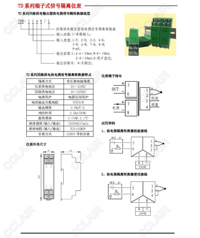 TDR-11A0/L,TDR-12A0/L,TDR-13A0/L,TDR-14A0/L,TDR-15A0/L,回路供電熱電偶隔離轉(zhuǎn)換器