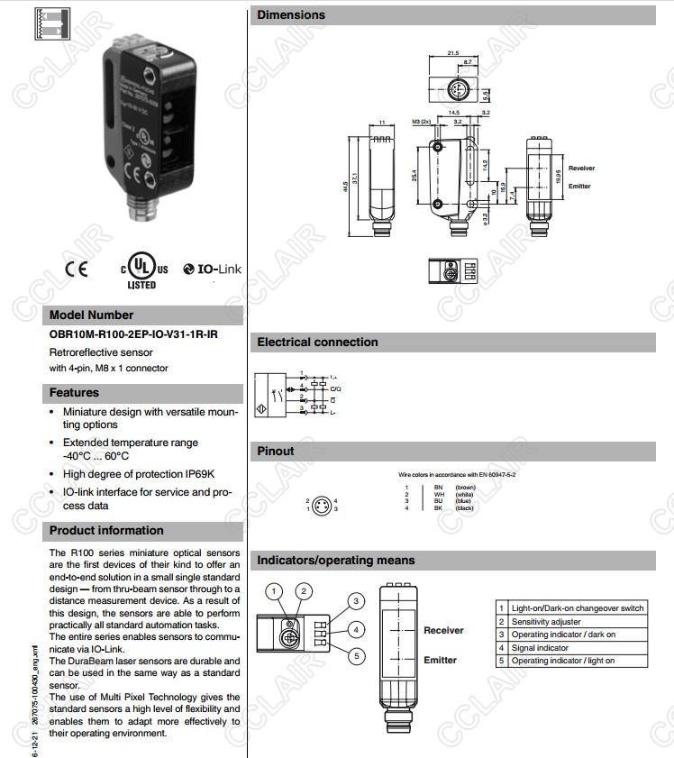 OBR10M-R100-2EP-IO-V31-1R-IR,反射板型光電開關(guān)