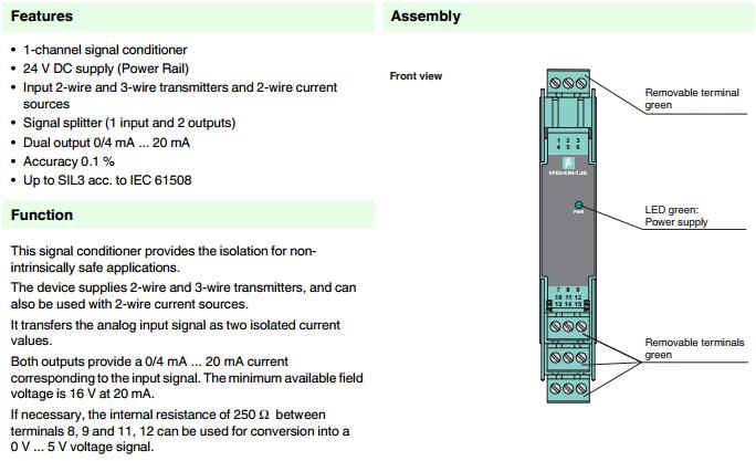 KFD2-CR4-1.2O,模擬量輸入信號調(diào)節(jié)器