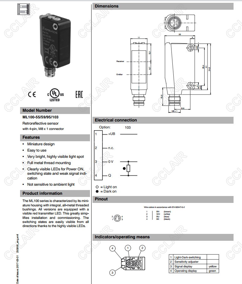 ML100-55/59/95/103,ML100-55/98/102,反射板型光電開關(guān)