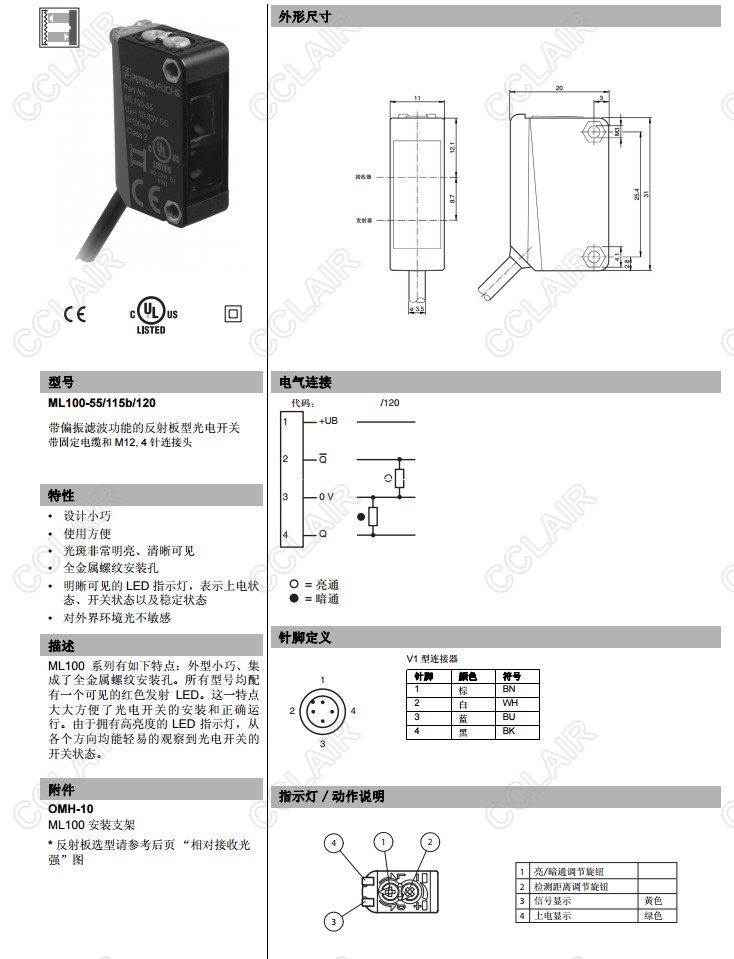 ML100-55/115b/120,反射板型光電開關(guān)
