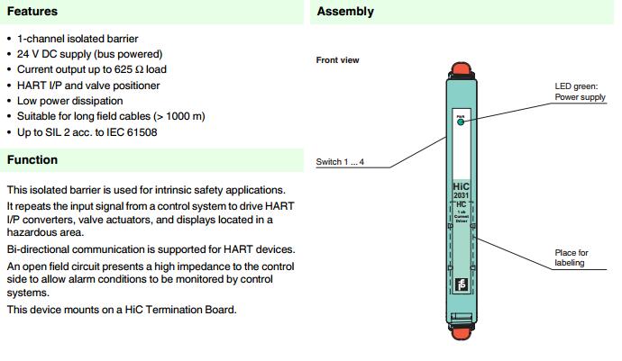 HiC2031HC,模擬量輸出安全柵