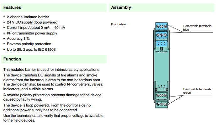 KFD0-CS-Ex2.51P,模擬量輸出安全柵