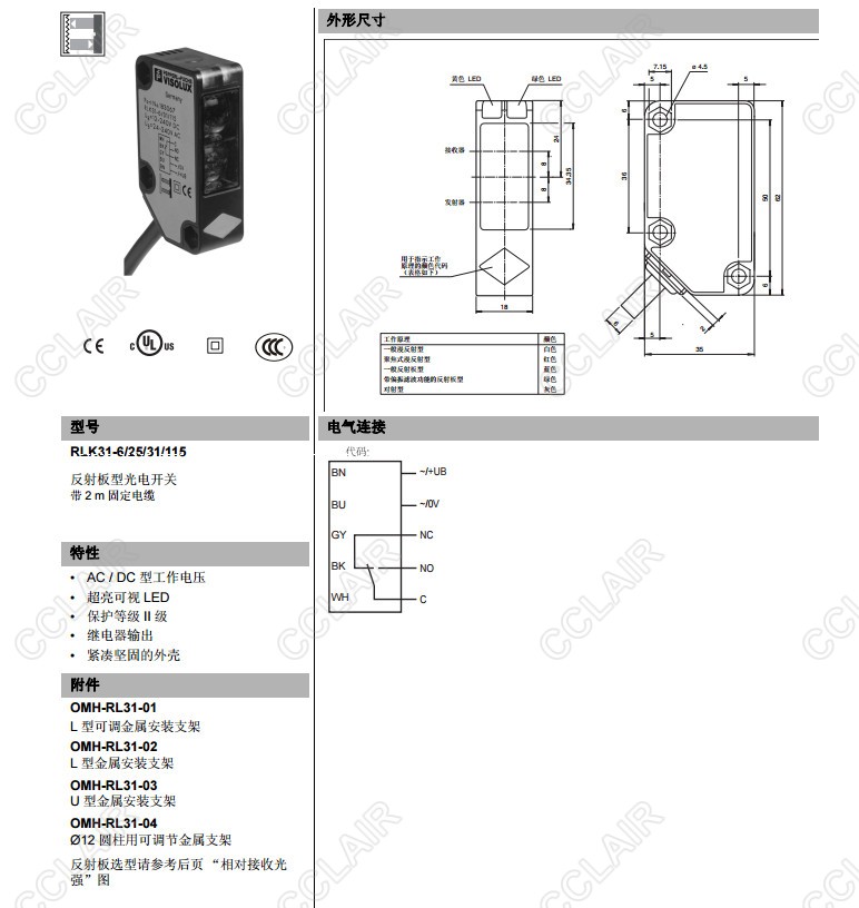 RLK31-6/25/31/115,反射板型光電開關