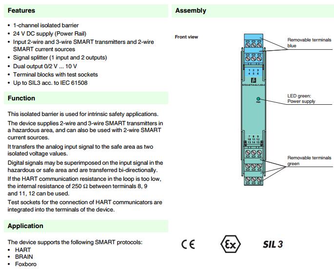 KFD2-STV4-Ex1.2O-2,模擬量輸入安全柵