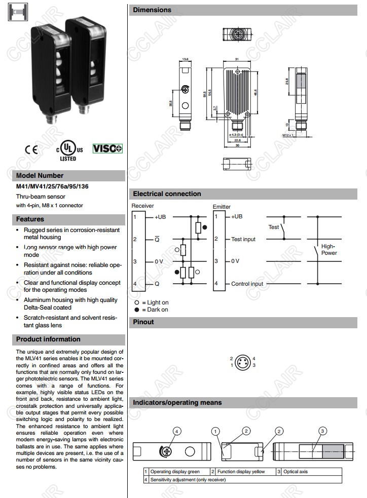 M41/MV41/25/76a/95/136,對射型光電開關(guān)