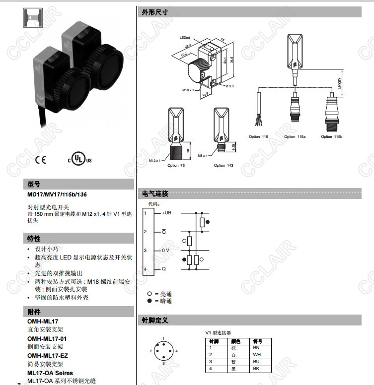 MD17/MV17/115/136,MD17/MV17/115b/136,對射型光電開關(guān)