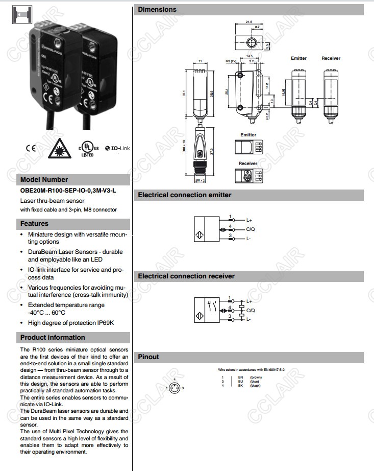 OBE20M-R100-SEP-IO-0,3M-V3-L,對(duì)射型傳感器