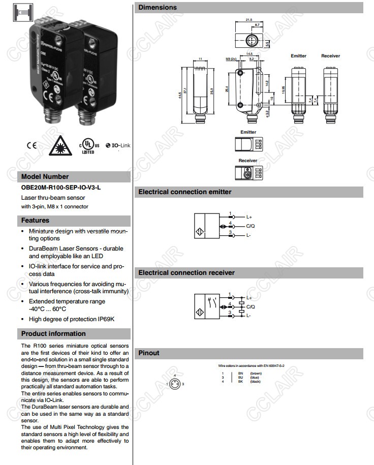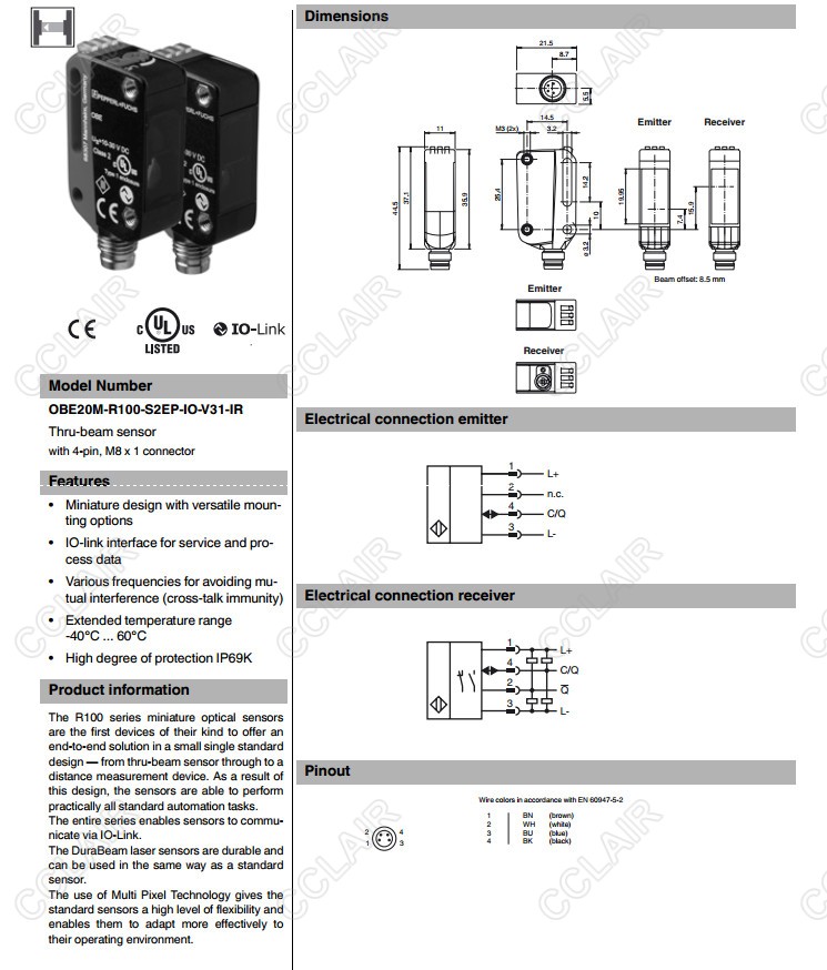 OBE20M-R100-S2EP-IO-V31-IR,OBE20M-R100-SEP-IO-V3-L,對射型傳感器