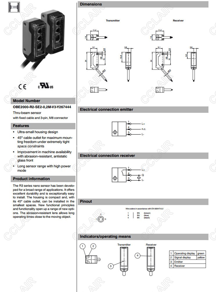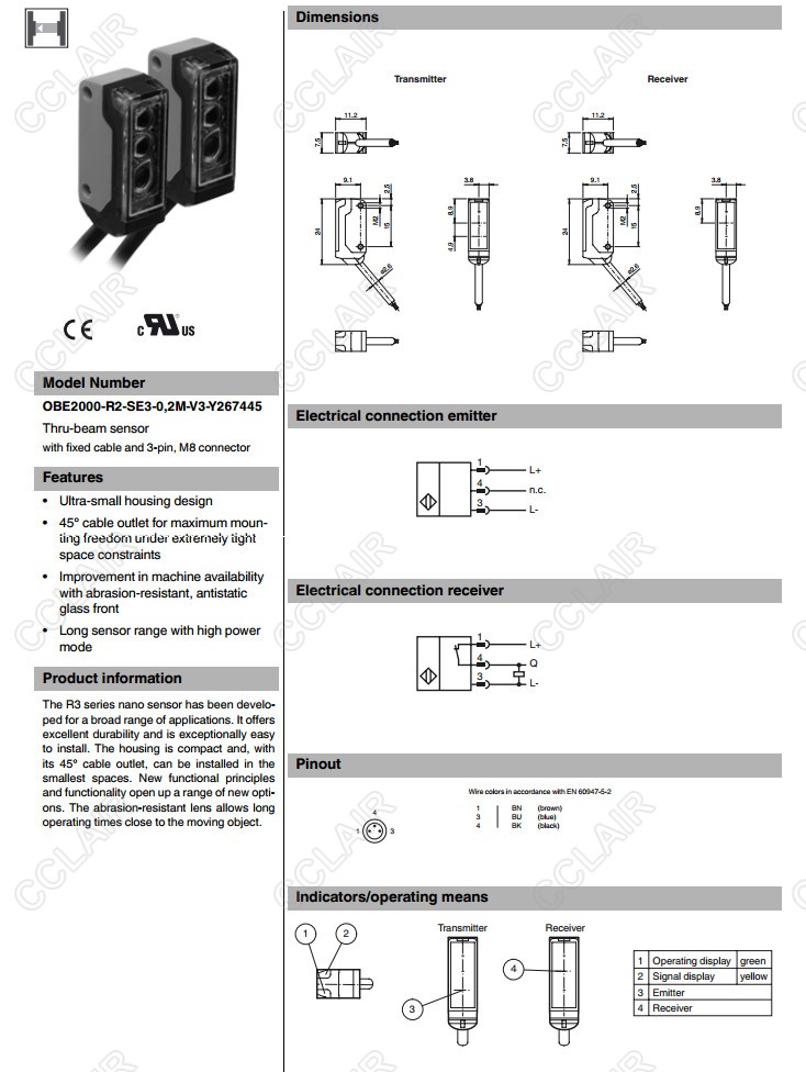 OBE2000-R2-SE2-0,2M-V3-Y267444,OBE2000-R2-SE3-0,2M-V3-Y267445,對射型傳感器