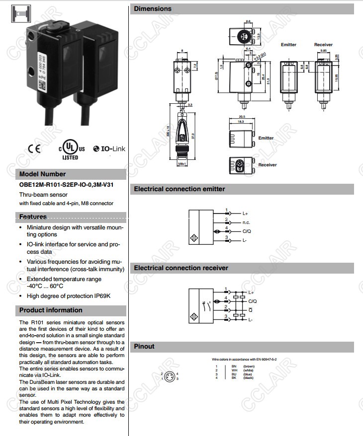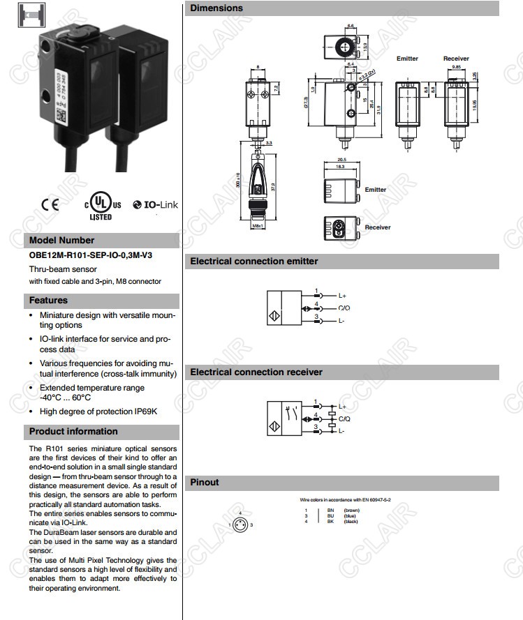 BE12M-R101-S2EP-IO-0,3M-V1,BE12M-R101-S2EP-IO-0,3M-V31,OBE12M-R101-SEP-IO-0,3M-V3,對(duì)射型傳感器
