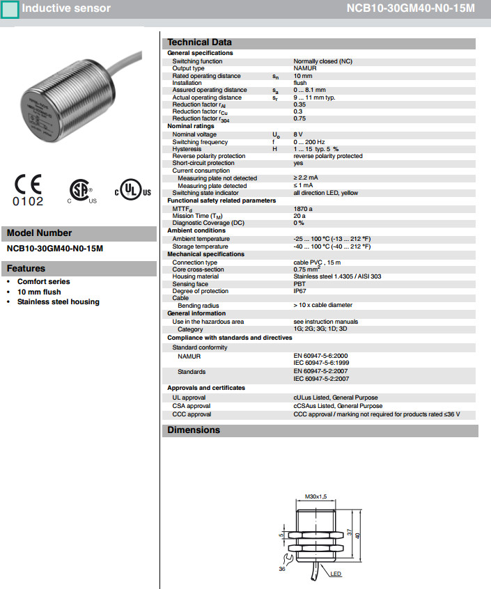 NCB10-30GM40-N0,NCB10-30GM40-N0-10M,NCB10-30GM40-N0-15M,NCB10-30GM40-N0-5M感應(yīng)式傳感器