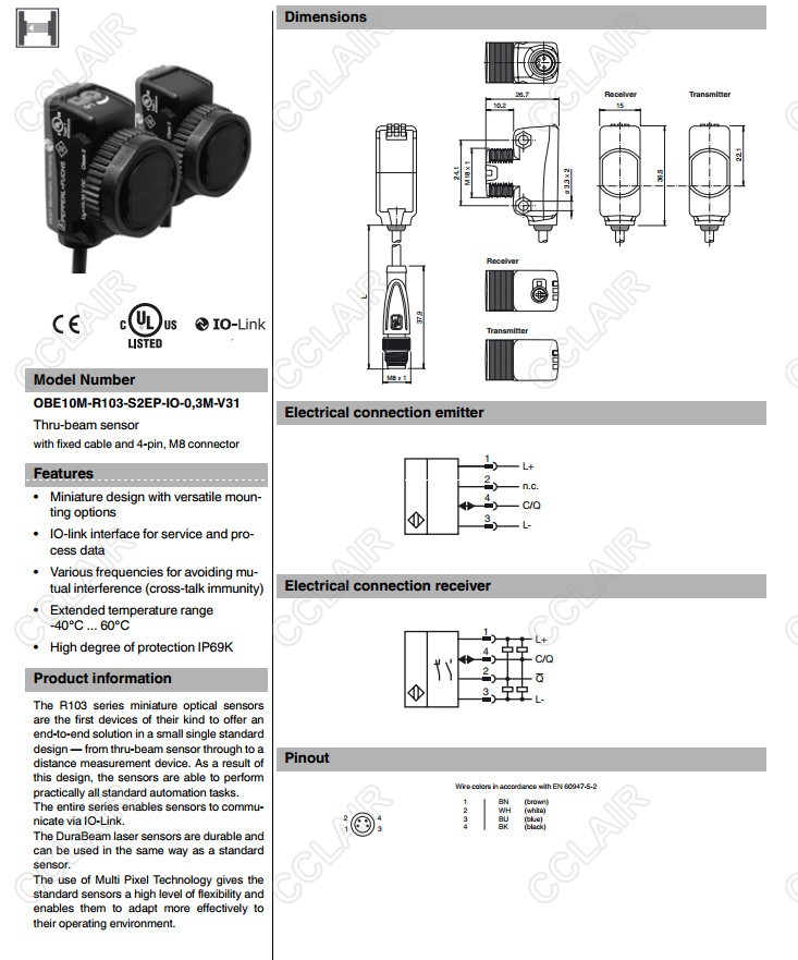 OBE10M-R103-S2EP-IO-0/3M-V1,OBE10M-R103-S2EP-IO-0/3M-V31,對射型傳感器