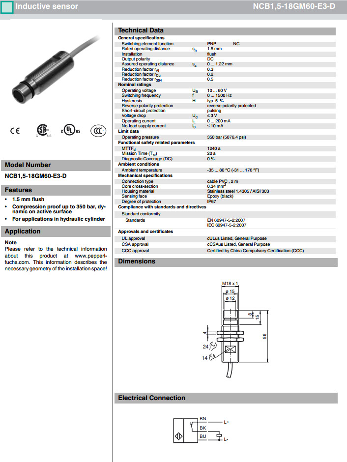 NCB1,5-18GM60-E3-D感應式傳感器