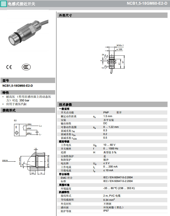 NCB1,5-18GM60-E2-D,感應(yīng)式傳感器