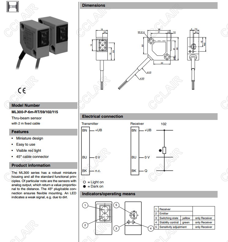 ML300-P-6m-RT/59/102/115,對(duì)射型傳感器