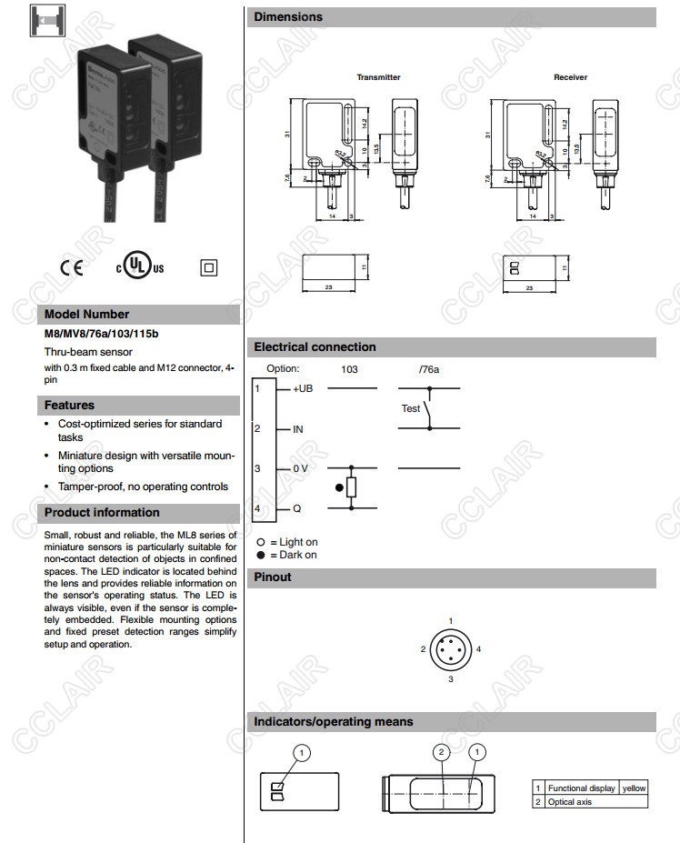 M8/MV8/76a/103/115b,對(duì)射型傳感器