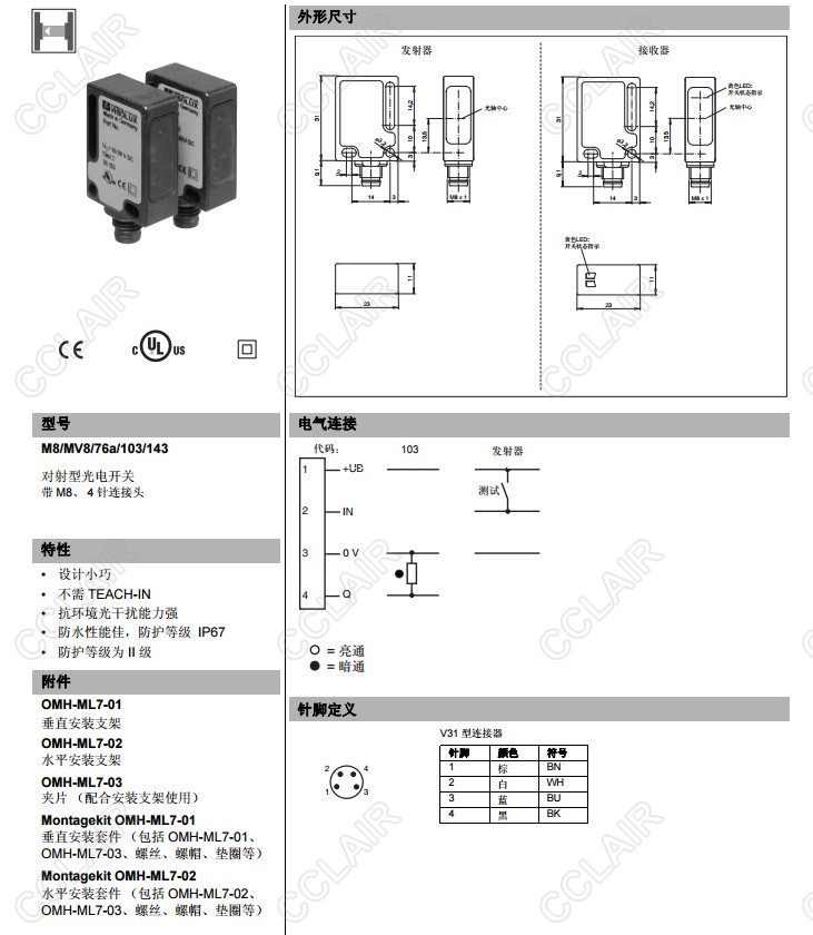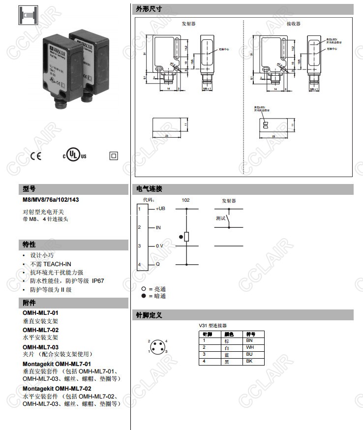 M8/MV8/76a/102/143,M8/MV8/76a/103/143,對(duì)射型傳感器