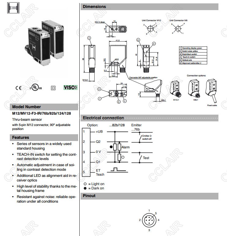 M12/MV12-F2-IR/76b/82b/124/128,M12/MV12-F3-IR/76b/82b/124/128,對(duì)射型傳感器