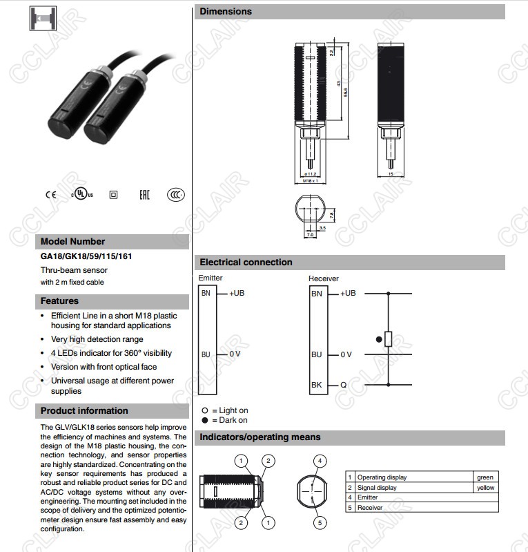GA18/GK18/59/115/161,對射型傳感器