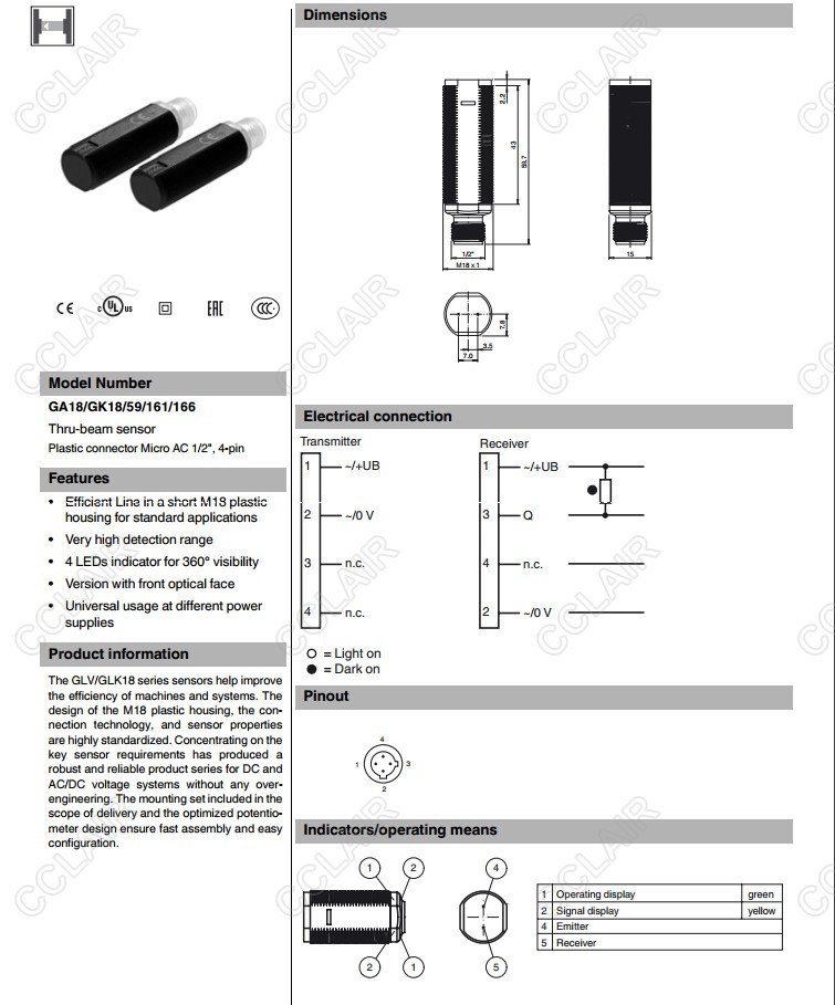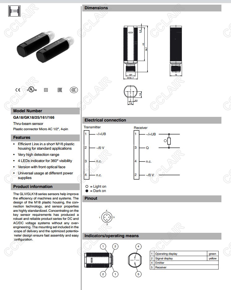 GA18/GK18/25/161/166,GA18/GK18/59/161/166,對射型傳感器
