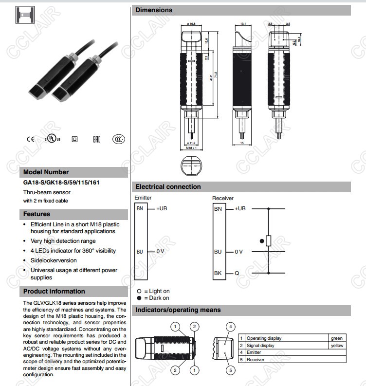 GA18-S/GK18-S/59/115/161,對射型傳感器