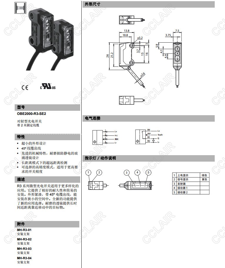 OBE2000-R3-SE2,對(duì)射型傳感器