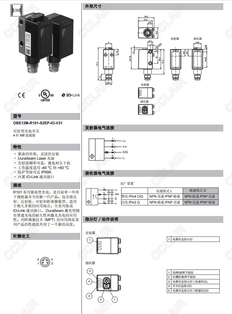 OBE12M-R101-S2EP-IO-V31,對射型傳感器