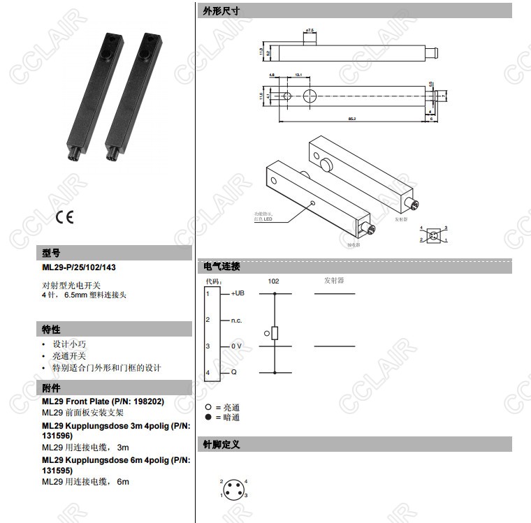 ML29-2P/25/102/143,ML29-2P/25/103/143,對(duì)射型傳感器